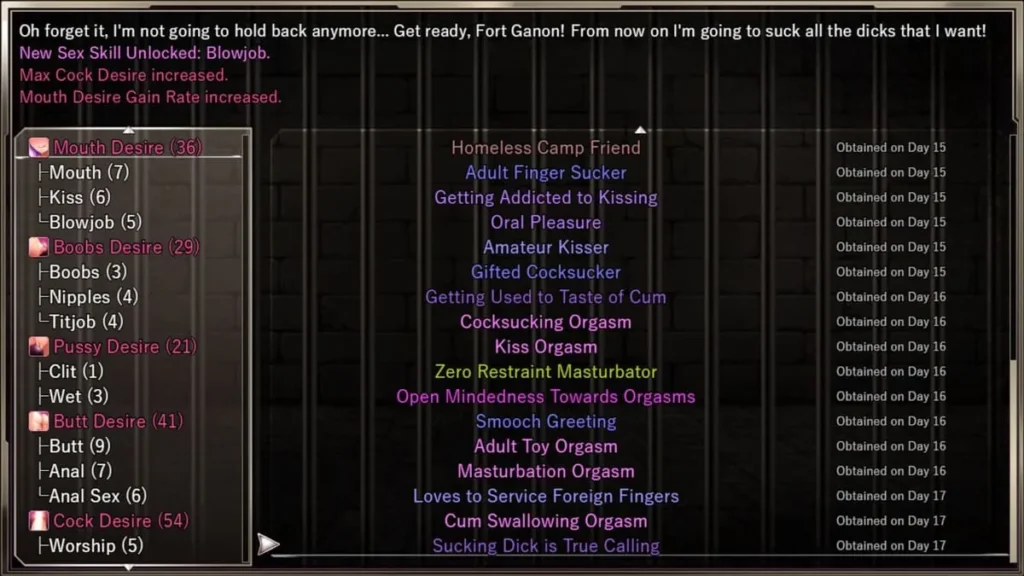 Every choice feeds it. Losing a battle and succumbing to an inmate’s advances? That will increase your corruption. Choosing certain dialogue options, wearing different outfits, or even purchasing specific items for your room can nudge it higher. The system is brilliantly responsive. It doesn’t just change ending slides; it alters scenes, unlocks new narrative branches and interactions, and even changes how Karryn’s own abilities function in battle. A pure Karryn might have stern, repressive skills, while a more corrupted one might gain abilities that leverage her new… reputation.