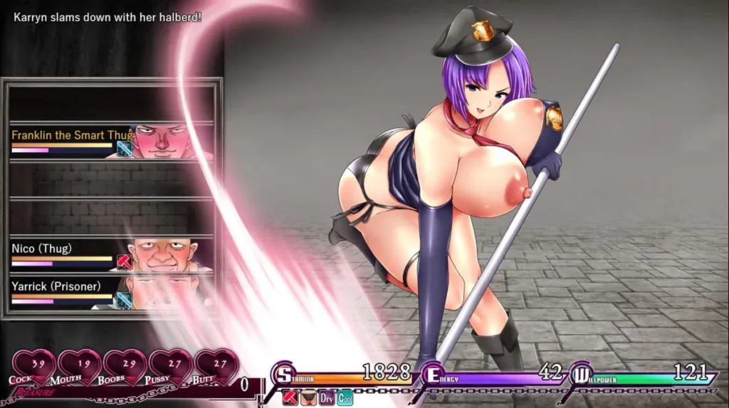 When night falls, or when you venture into the prison yards, the game shifts. This is where the JRPG battles Karryn’s Prison fans discuss come into play. Encounters are turn-based, but with a provocative edge. Inmates will use skills that are less about dealing damage and more about applying “Status Effects” like Taunt, Charm, or Arouse. Karryn’s own abilities are a mix of defensive moves, powerful attacks, and skills that can calm her own rising… tensions.